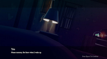 You are a boy. Even though you are scared and shadows feel dangerous, you are waiting for your mother, a mother who broke her promise. At night, small things like brushing your teeth, watching TV, or playing with toys feel strange and frightening.
